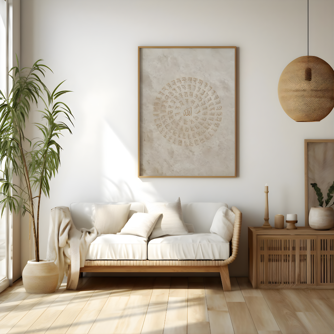 Adorn your walls with the 99 Names of Allah Modern Islamic Wall Frame Painting — a beautiful blend of spirituality and modern design. This Islamic wall art painting is crafted with premium materials, perfect for home, mosque, or office décor, and an ideal Islamic gift in Pakistan.