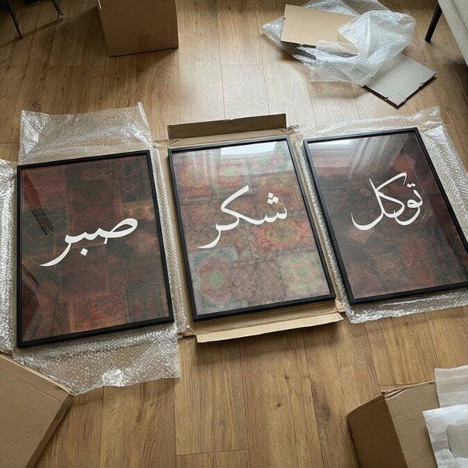 Yar Packaging safe thi aur frames bilkul scratch-free aaye but thora lait aya us ke lye 4 star otherwise quality is great jab Wall pe lagay hue bohot classy feel de rahay hain